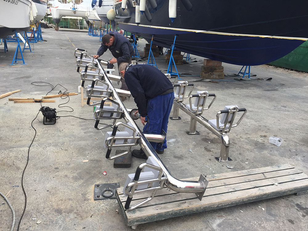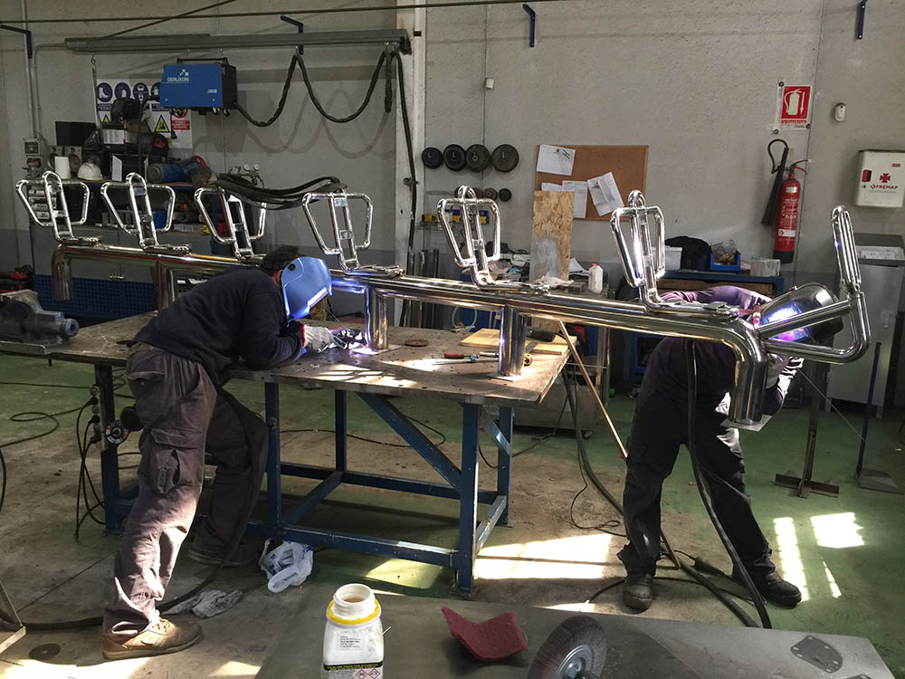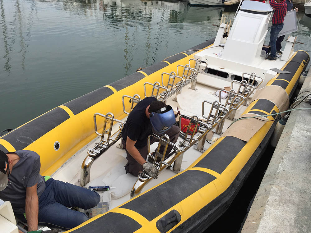 Fabricación en taller de banco de asientos en INOX para embarcación de recreo.